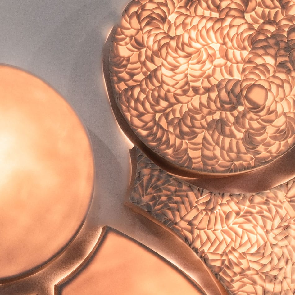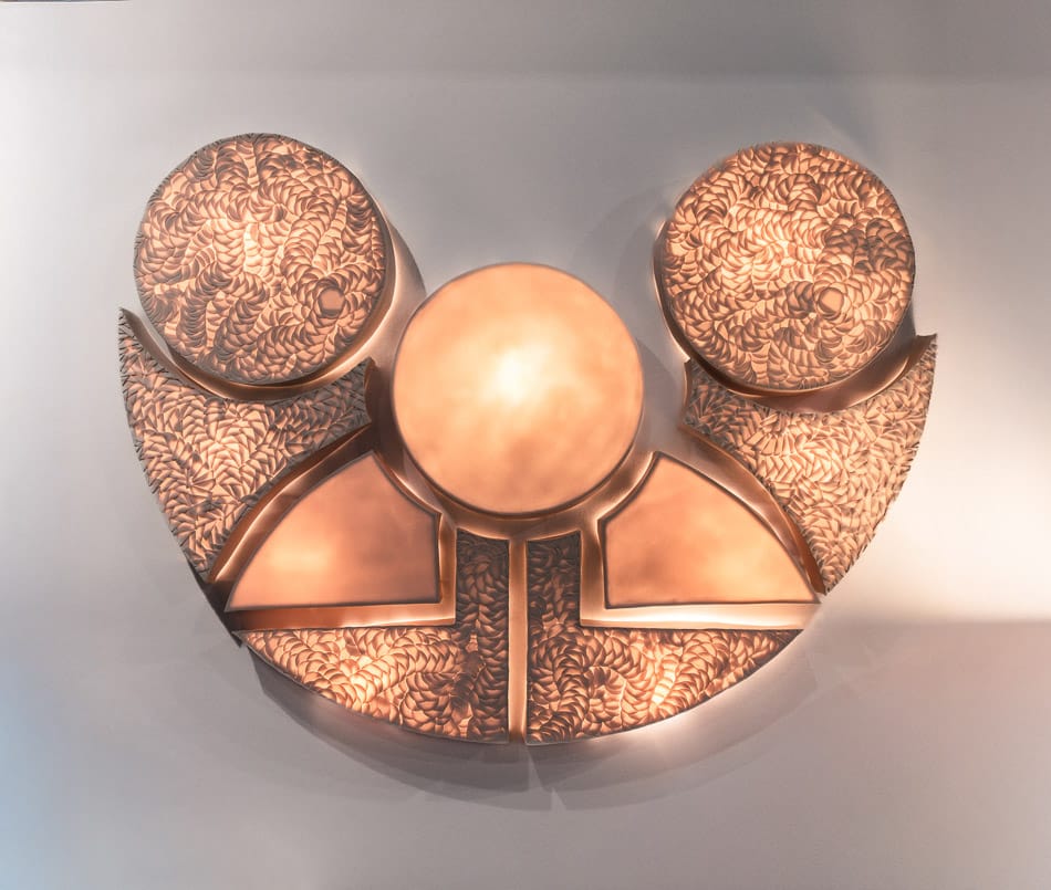 This wall light sculpture brings together porcelain biscuit artworks including Untitled 28 and Untitled 30, into a single luminous composition.
