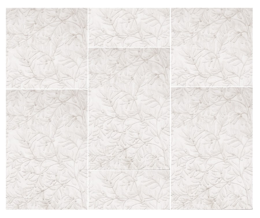 Its modular design allows the motif to extend seamlessly in all directions, top, bottom, and sides, enabling continuous compositions that can be applied much like a wallpaper. Whether used as a feature panel or across an entire wall, it creates a rhythmic, enveloping landscape.