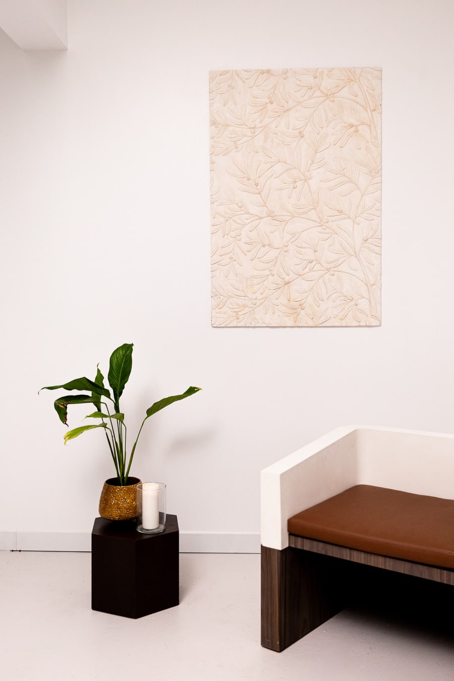 Through its shallow relief, the surface captures light with subtle variation, creating a gentle movement that shifts throughout the day. Both refined and approachable, the panel offers an elegant alternative to traditional wall treatments, combining artisanal character with ease of installation.