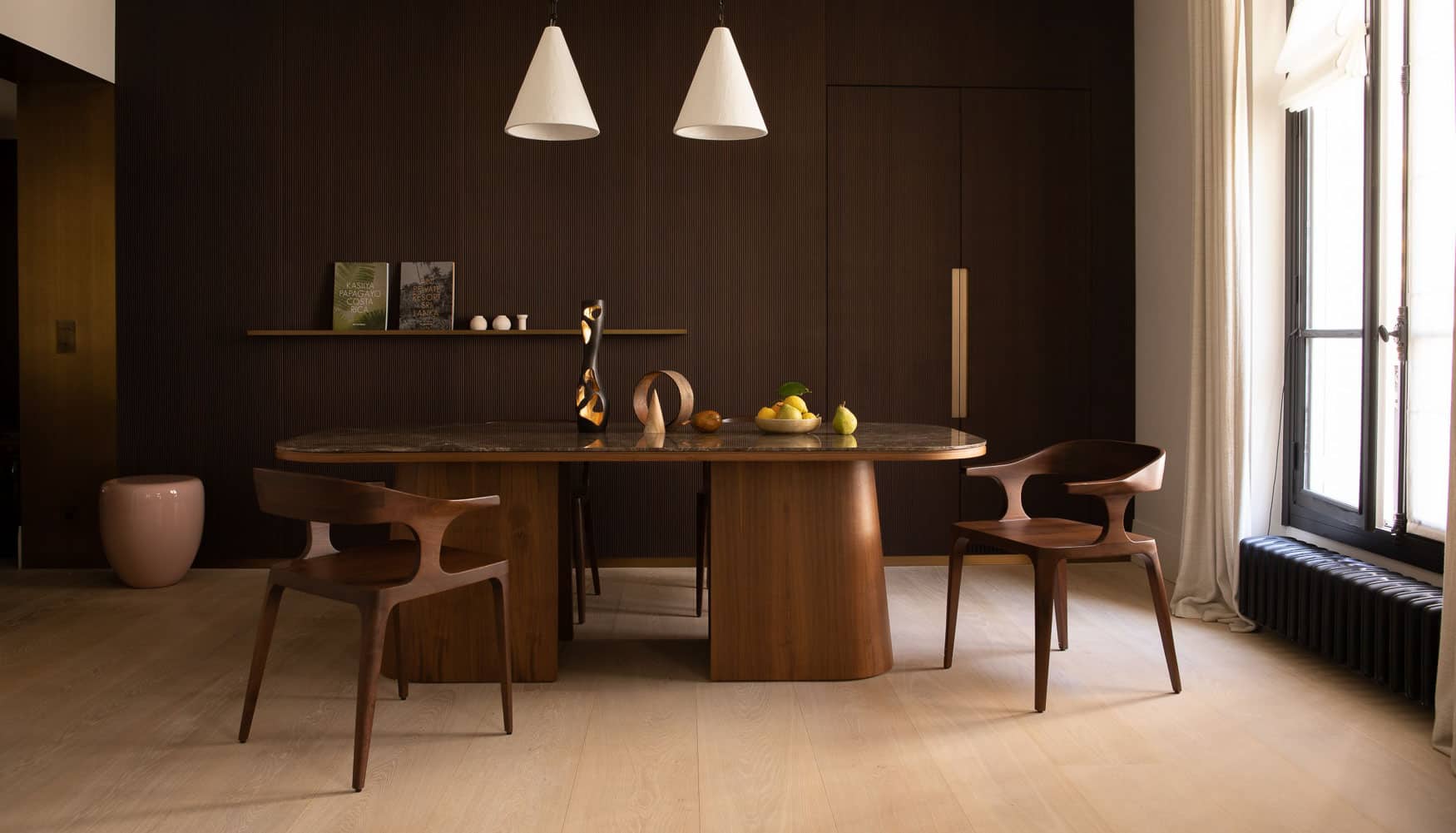 A singular seat, captivatingly sensual. The delicate walnut wood invites you to sit upon its raw material, vibrant with beauty. The captivating form loses us in its curves and becomes a reverie. Nature is sublimated by handcrafted production. A gesture that lends the whole an original elegance, rooted in the very edge of perfection.