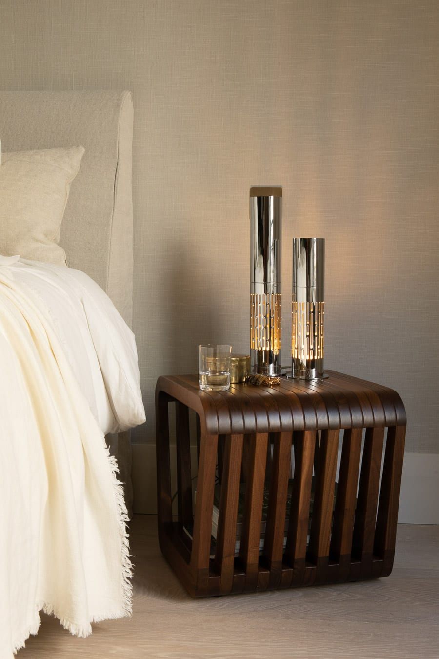 The Link collection comprises three elegant pieces, two bench versions and a stool. The Link stool distils the collection into its most essential form. Compact and perfectly proportioned, it retains the signature architectural line and organic softness of the series. Whether used as a stool, side table, or bedside element, it offers flexibility with character, a small piece with a strong and deliberate presence.