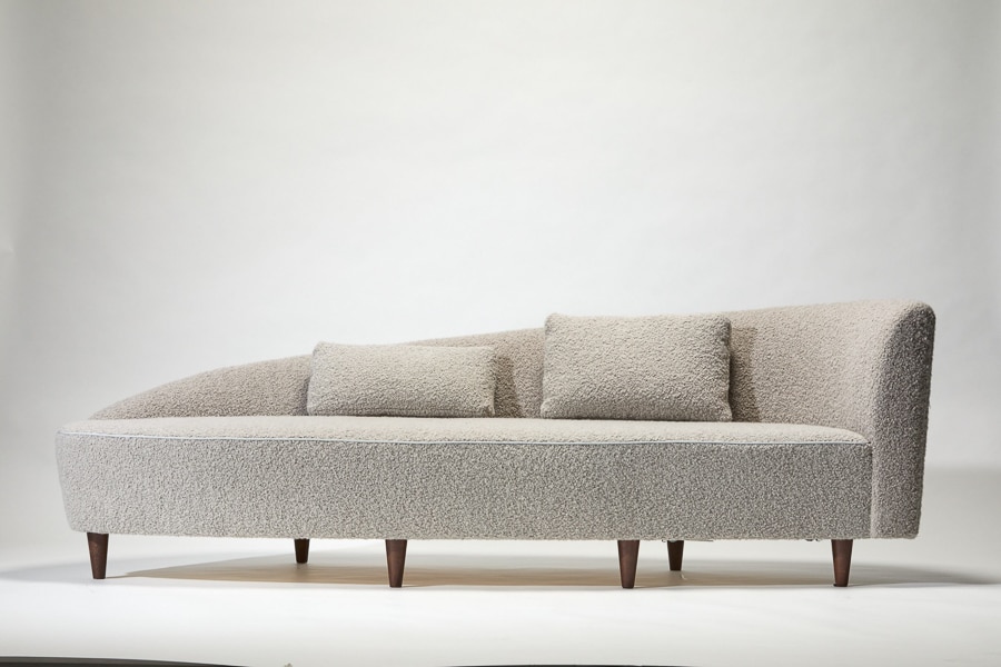 The Amiya sofa is available with or without the corner chaise longue. Its gentle curves and rounded, asymmetrical design invite relaxation, creating an informal yet composed presence. True to the designer’s aesthetic, the piece balances contemporary expression with clean, controlled lines, offering comfort without compromise.