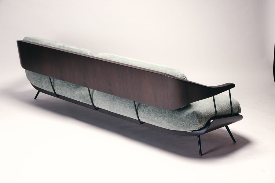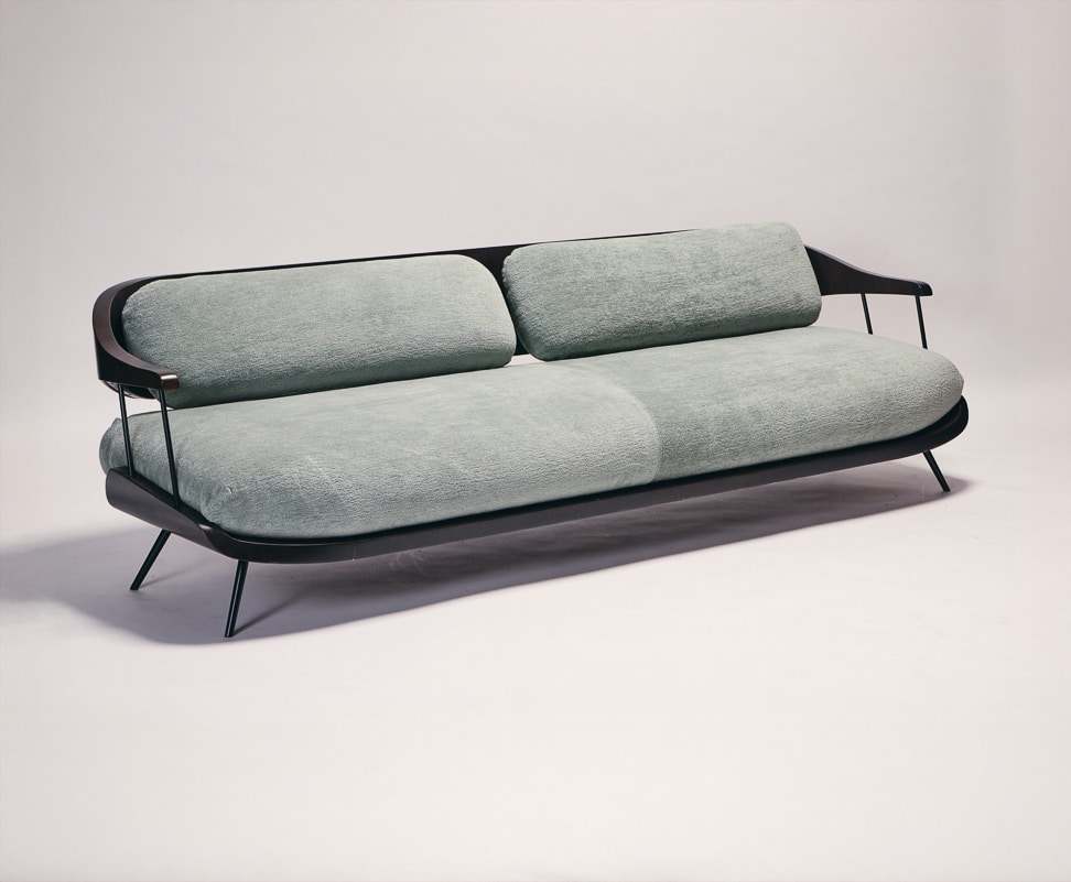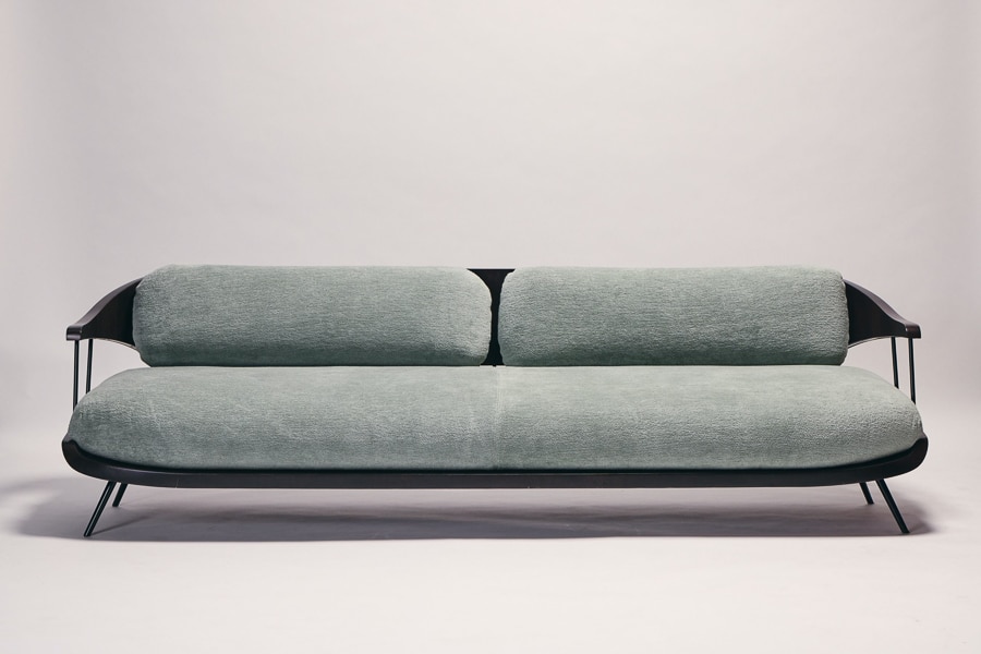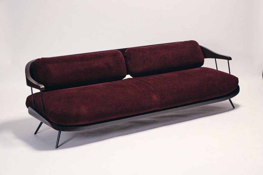 The Octave sofa combines American walnut and metal in a composed and timeless design. The contrast between the warmth of wood and the precision of black lacquered steel gives the piece a contemporary clarity. Fully upholstered seat and back offer generous comfort, while the clean lines maintain an elegant restraint. Customisable in fabric, Octave adapts effortlessly to both residential and contract interiors.
