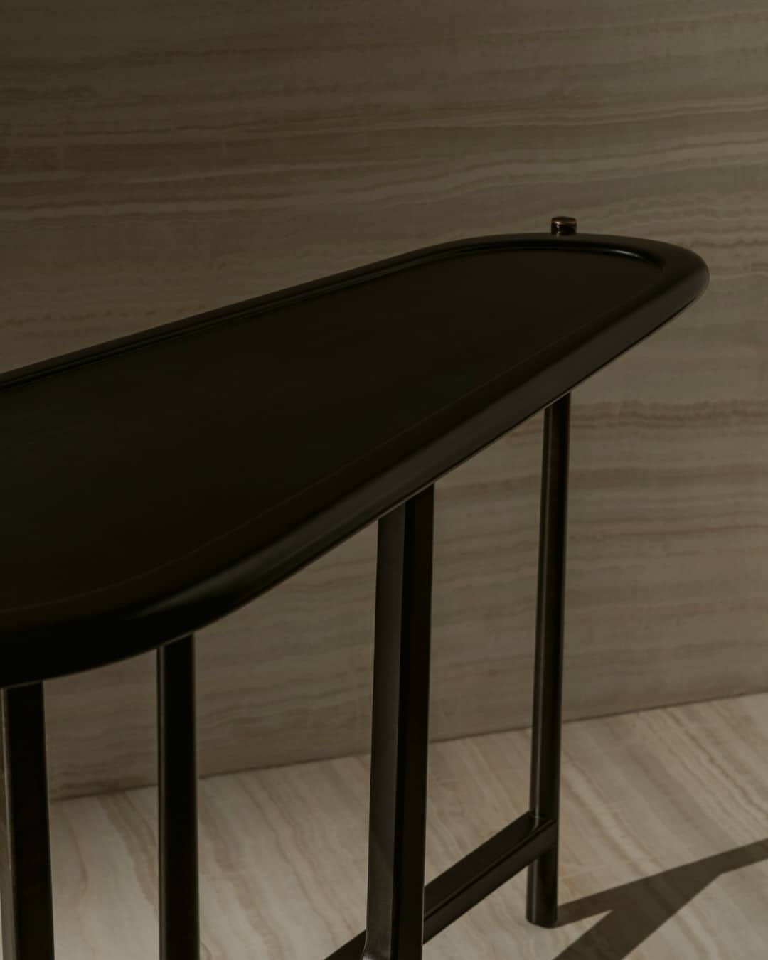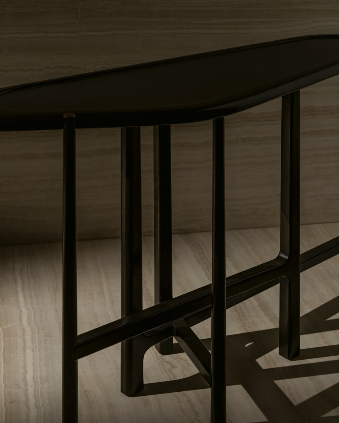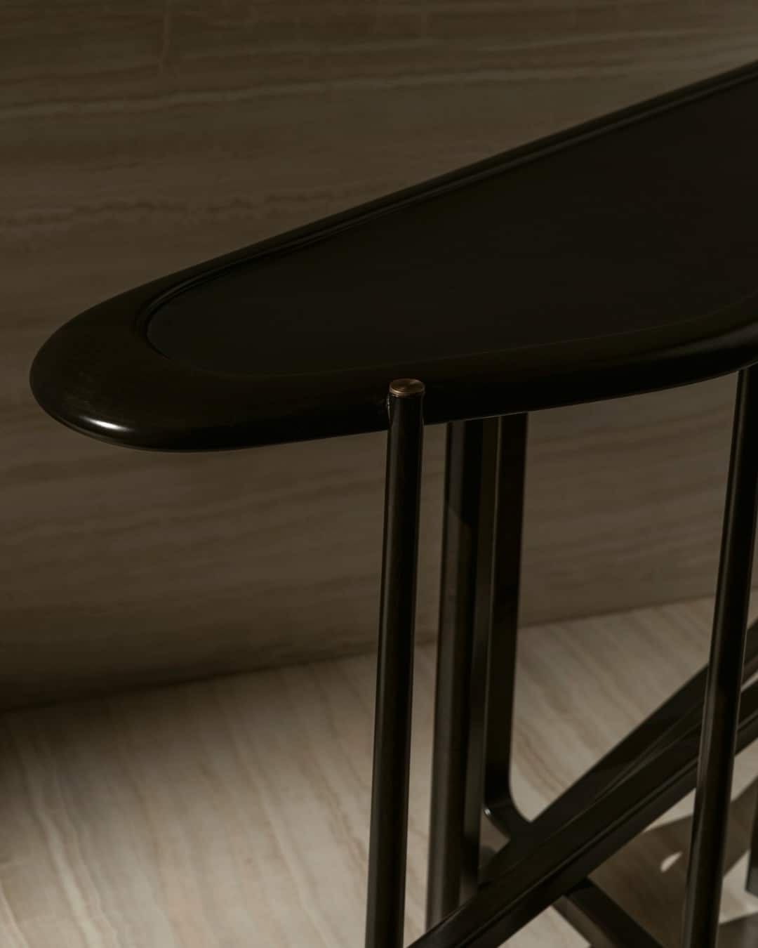 The Hurst Console is a sculptural statement piece defined by its fluid top and architectural base. Crafted entirely in solid sycamore, the console celebrates the natural movement of the grain, enhanced through either a natural or stained finish and protected with a refined matte or satin varnish. Slender proportions and a rhythmic leg composition give the piece a light, elegant presence, while patinated brass detailing introduces a subtle note of warmth and contrast. Designed to function equally as a hallway console or a feature piece within a living space, HURST balances craftsmanship, material integrity, and contemporary form.