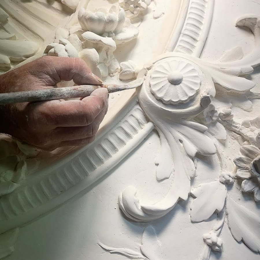 Staff plaster is a traditional composite material made from fine plaster reinforced with natural fibres, offering a unique combination of strength, lightness, and precision. Historically used in decorative architecture, it remains one of the most versatile materials for creating detailed and bespoke interior features. This technique enables the realisation of intricate mouldings, cornices, ceiling elements, and sculptural forms with exceptional accuracy.