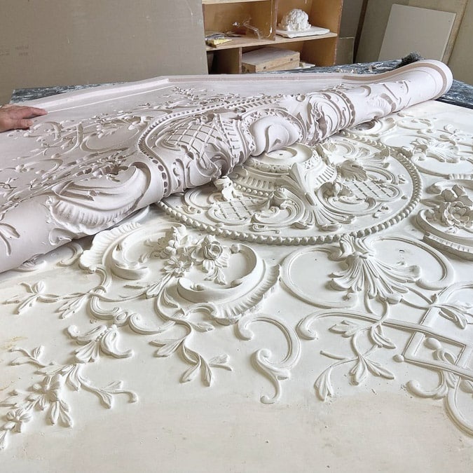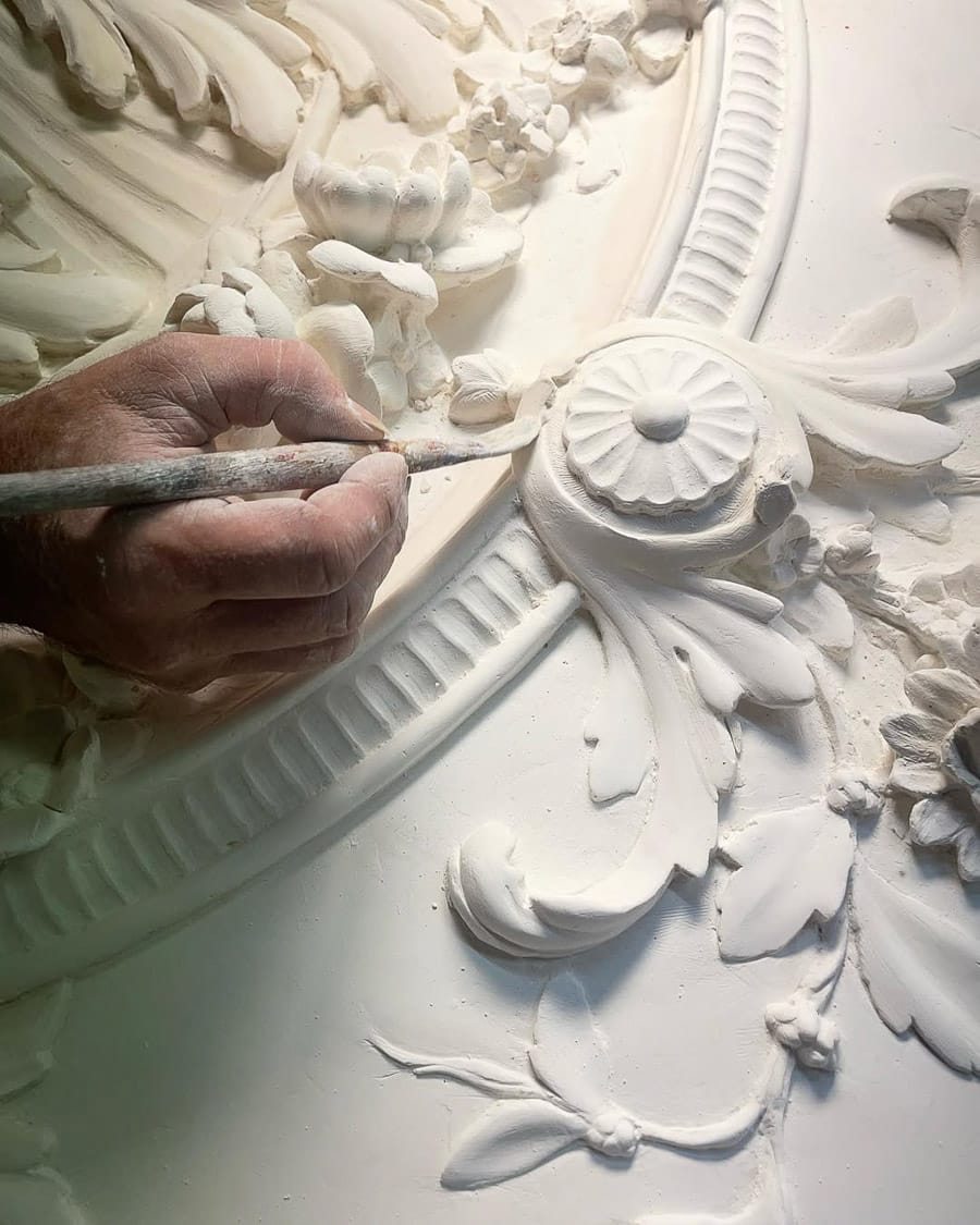 Staff plaster is a traditional composite material made from fine plaster reinforced with natural fibres, offering a unique combination of strength, lightness, and precision. Historically used in decorative architecture, it remains one of the most versatile materials for creating detailed and bespoke interior features. This technique enables the realisation of intricate mouldings, cornices, ceiling elements, and sculptural forms with exceptional accuracy.