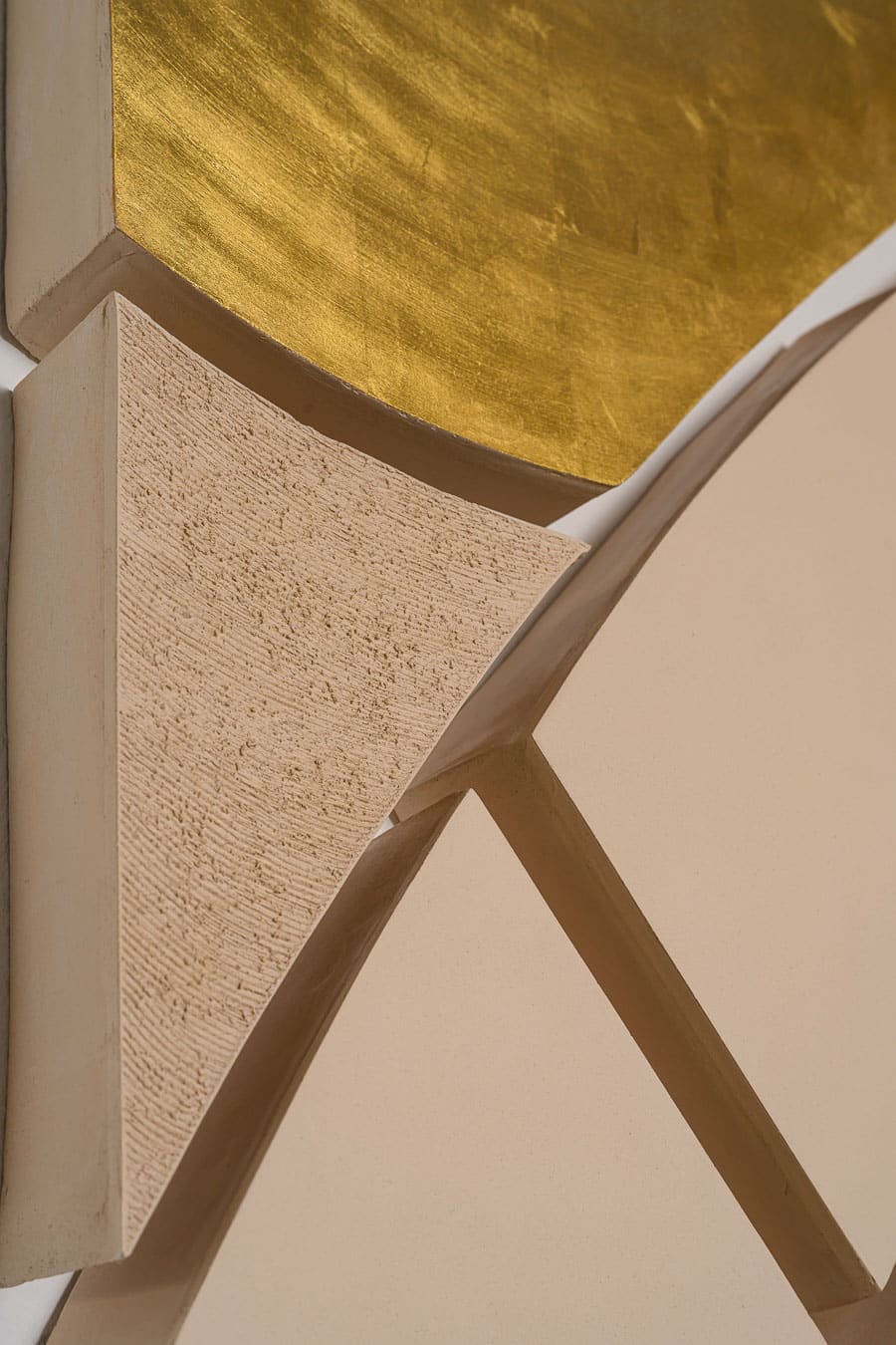 Many works are finished with hand applied 23 carat gold leaf or select glazes. Gilding is laid directly onto raw or burnished clay, allowing the gold to settle into the surface and interact with natural textures. Glazes, including the distinctive cosmic blue, are used to create depth, variation, and light responsive surfaces that complement or contrast the clay body.
